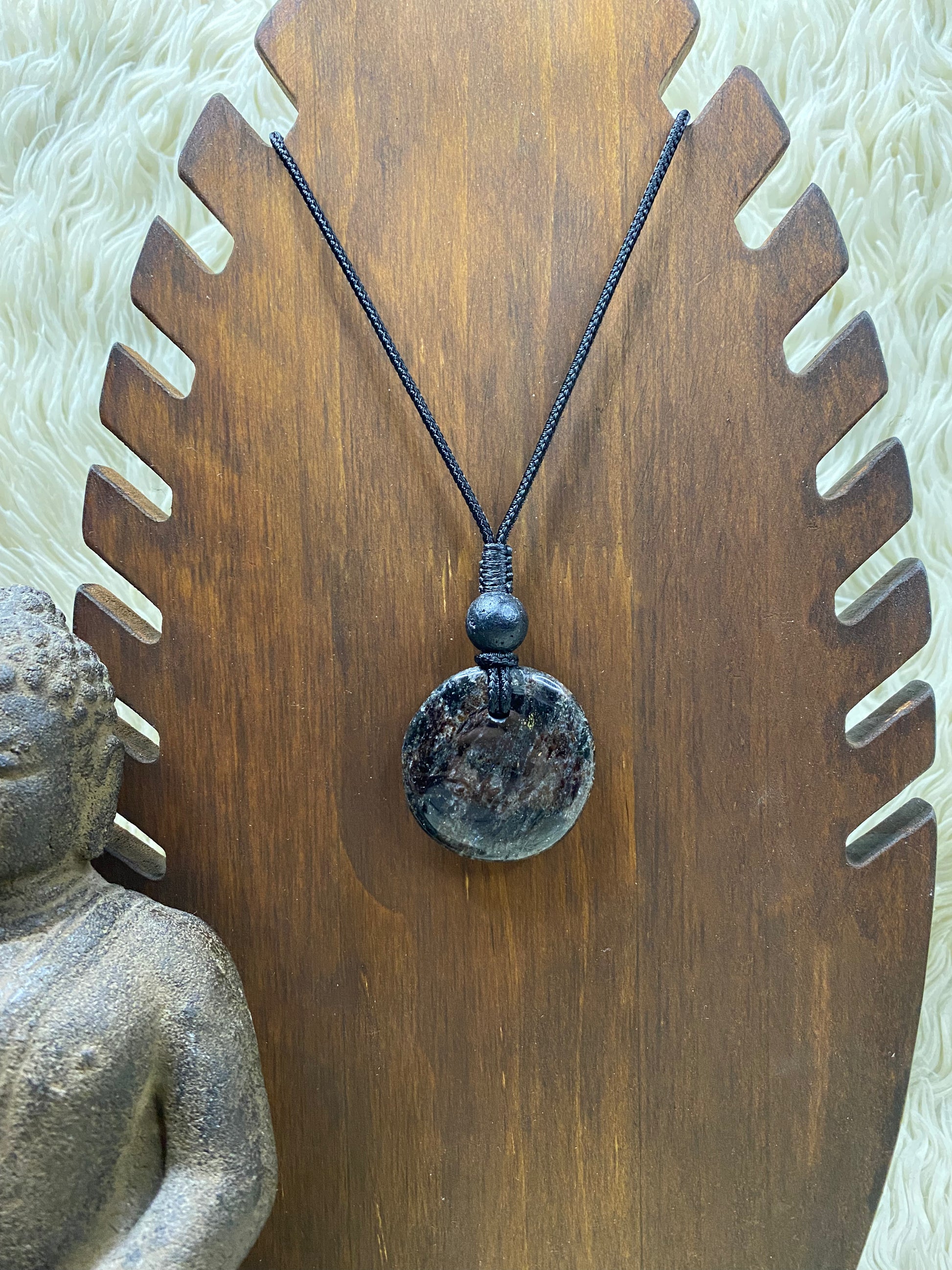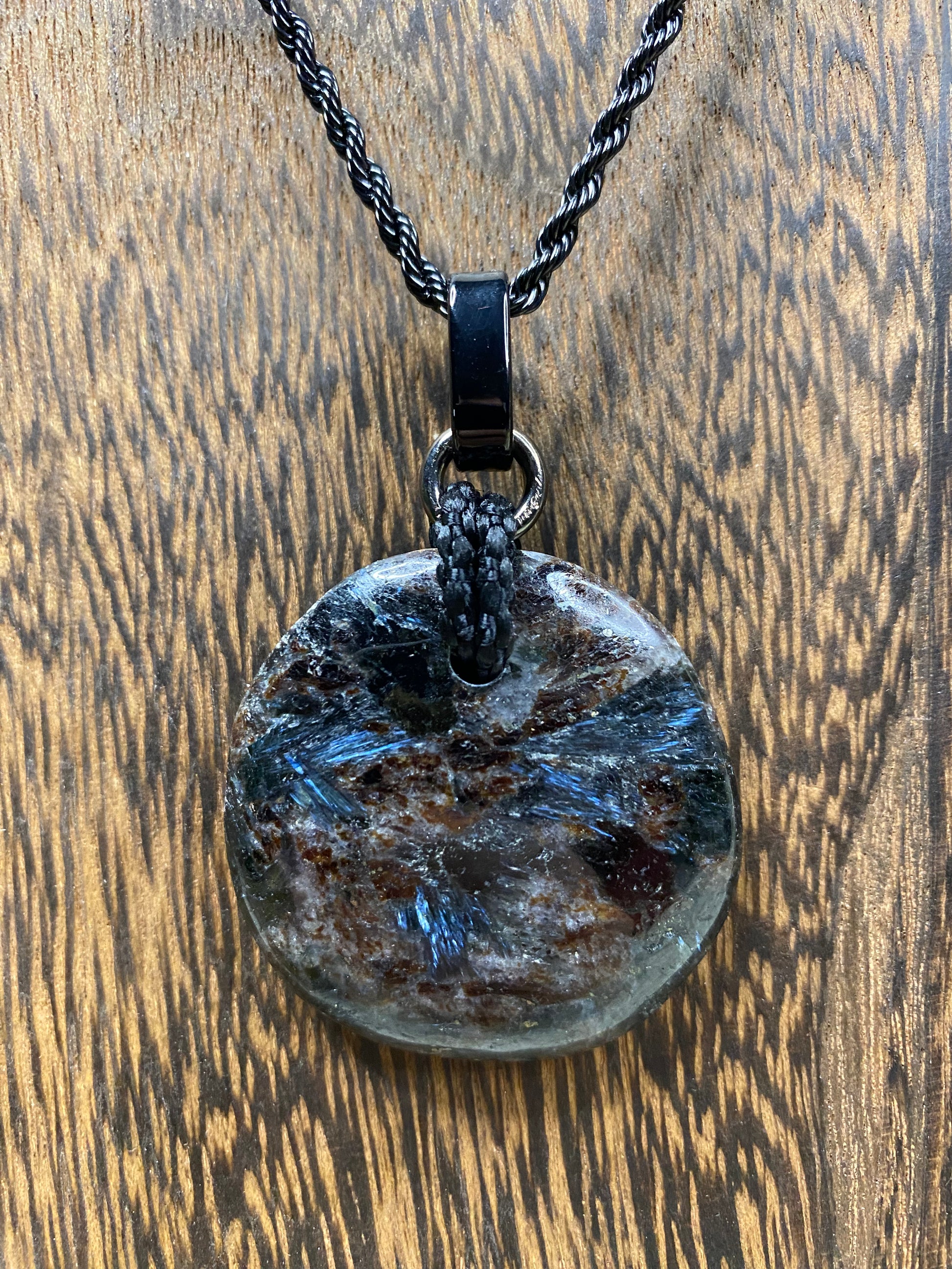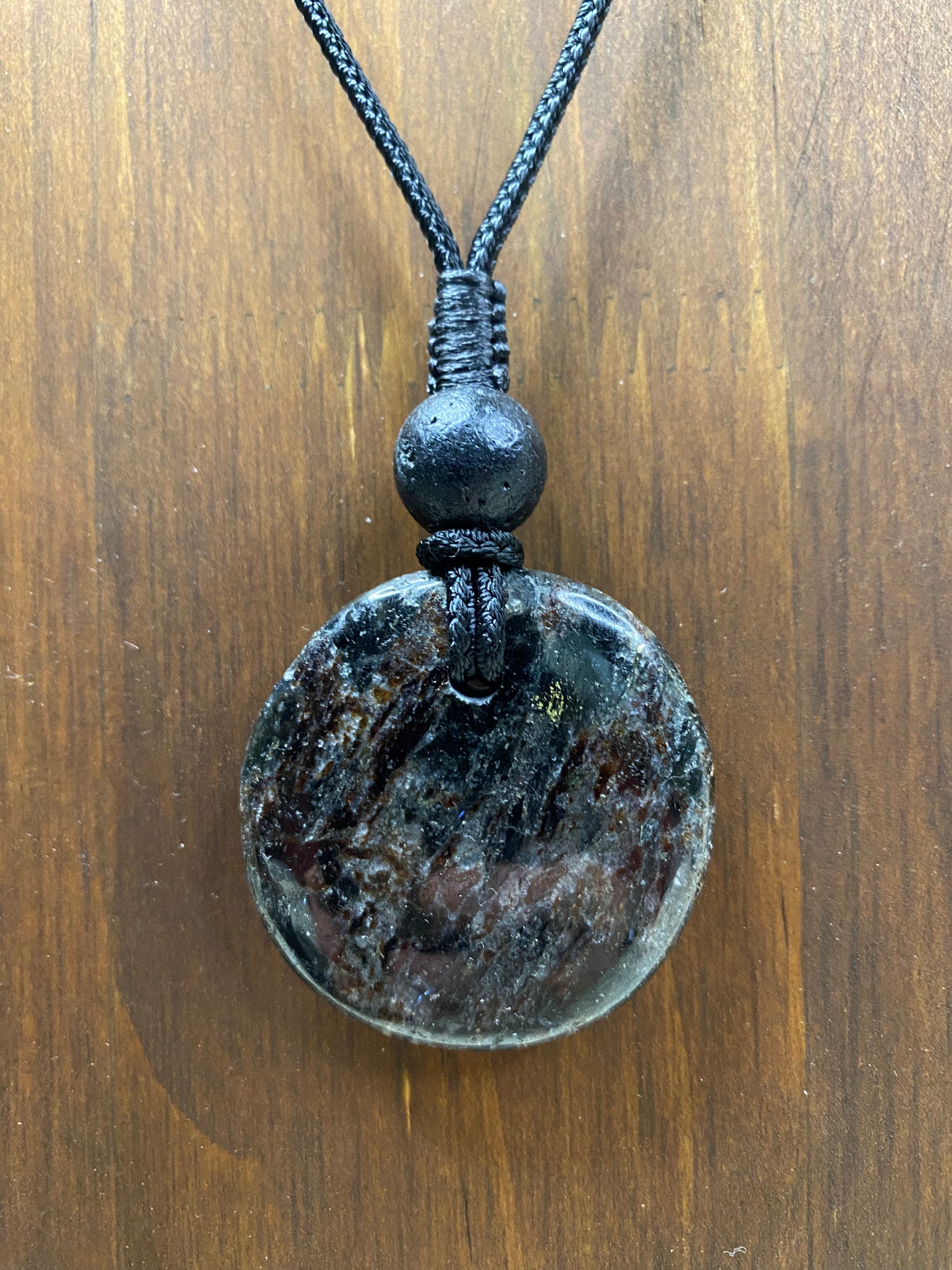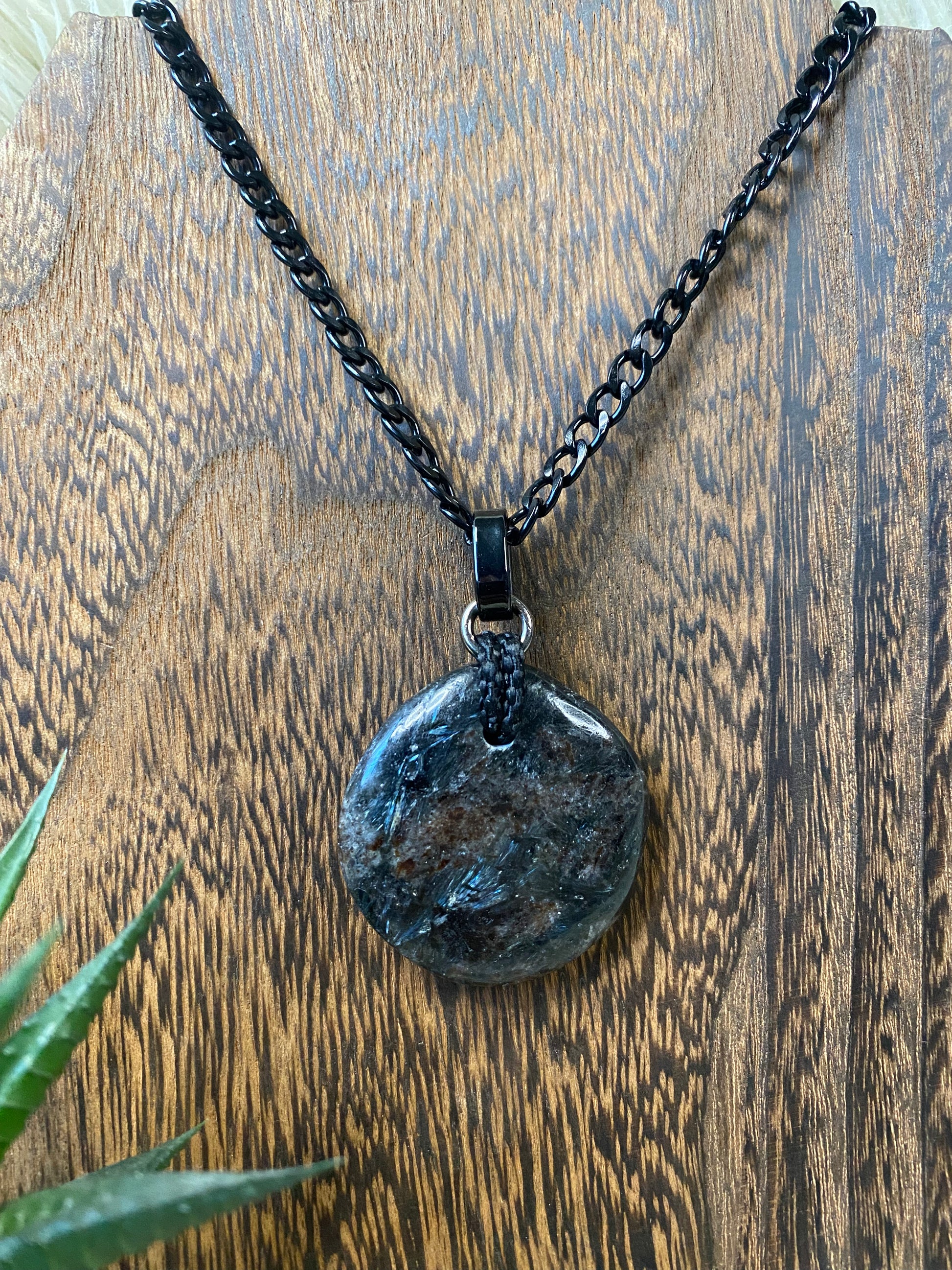 Auric Vein heeft diepe, donkere tinten met een warme glans die kracht en focus uitstraalt. Elke ketting met Auric Vein voelt beschermend en ondersteunend aan, alsof hij je energie helpt te richten en je innerlijke kracht activeert.