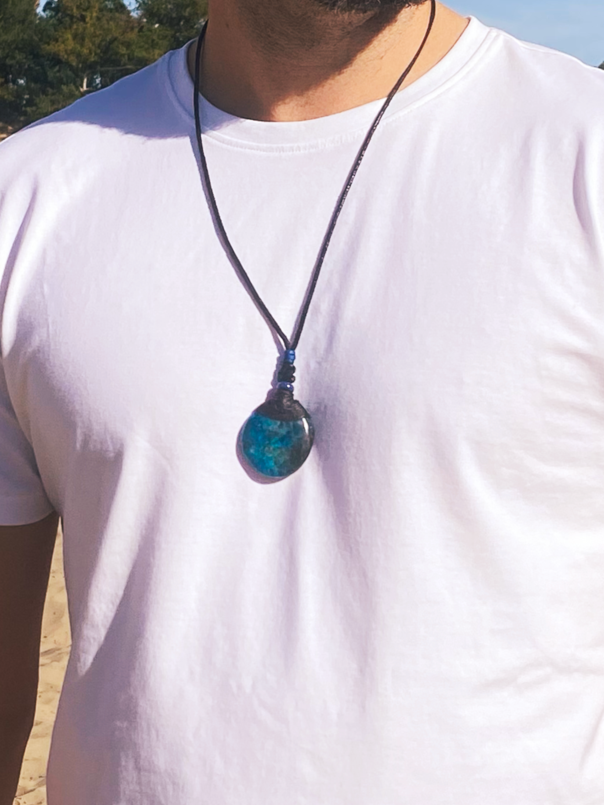 Blue Orion voelt alsof hij rechtstreeks uit een heldere oceaan is gevangen, met een sprankelende blauwgroene tint die vrijheid en inspiratie uitstraalt. Elke ketting met Blue Orion nodigt uit tot creativiteit en moed om jezelf te laten zien. De ketting komt in een verstelbare lengte die zich moeiteloos laat aanpassen.