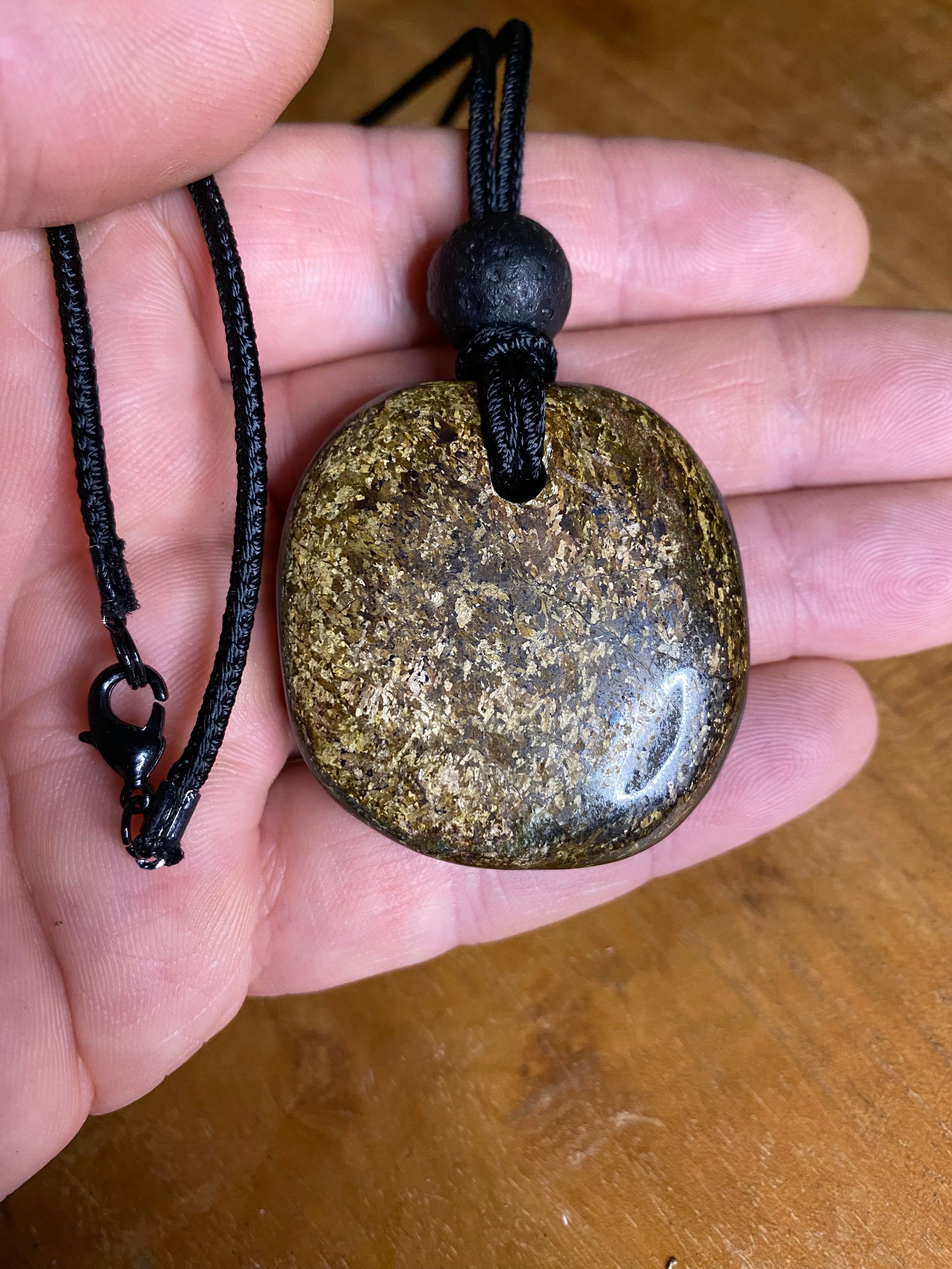 Bronze Shield heeft warme bruintinten met een subtiele glans, alsof het zonlicht zacht over een beschermend schild valt. Elke ketting met Bronze Shield voelt geruststellend en krachtig aan, alsof hij je energie beschermt.