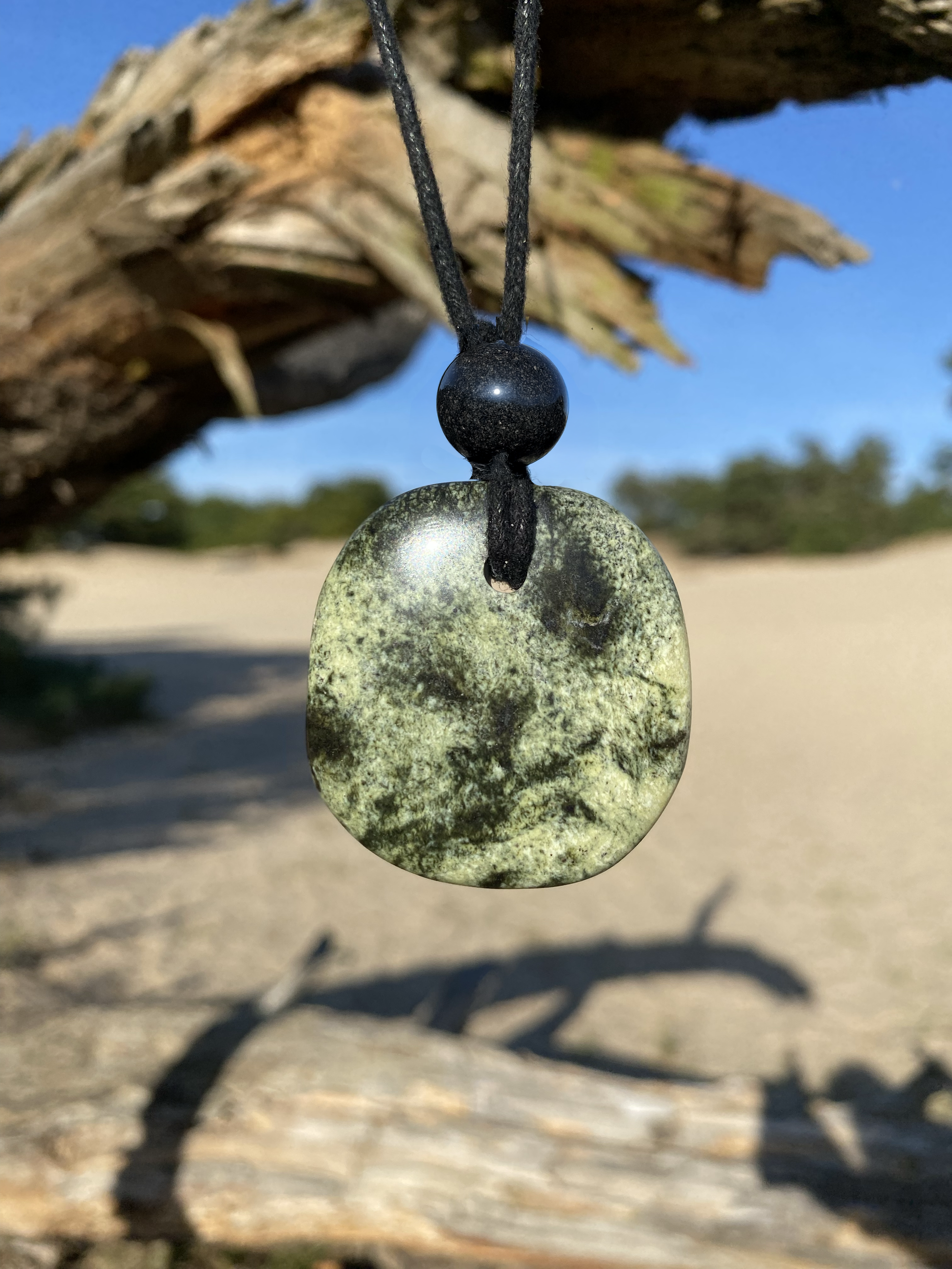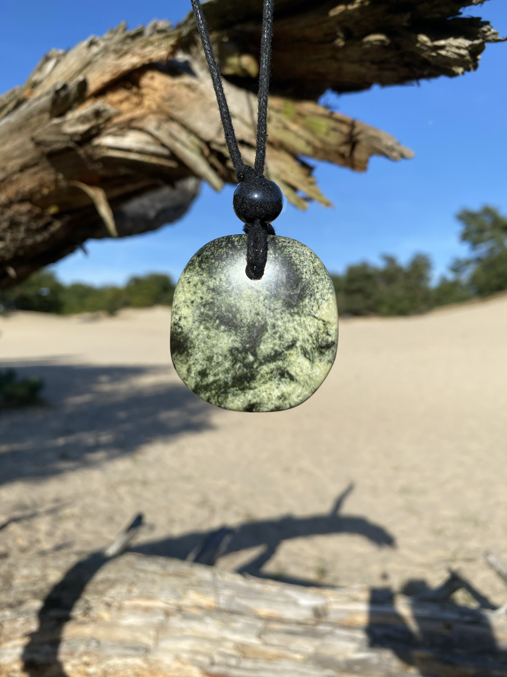 Crytha heeft levendig groen met zwarte accenten — een steen met een stoere, tactische uitstraling en een energieke, geaarde kracht. Krachtig, scherp en standvastig, met een verstelbare lengte die zich moeiteloos laat aanpassen.