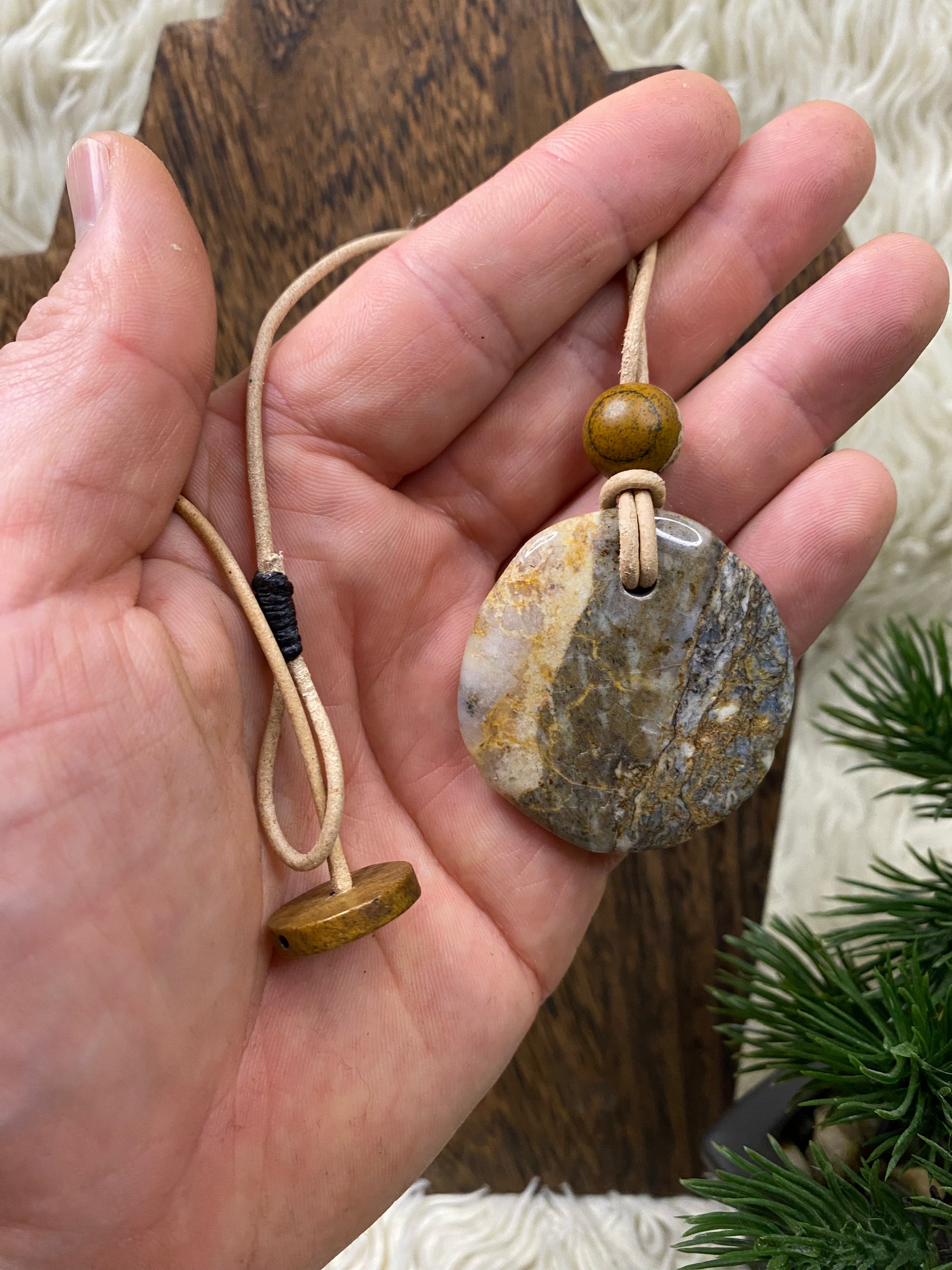 Earth Insight heeft warme tinten van bruin, goud die zacht in elkaar overlopen. De natuurlijke, aardse uitstraling geeft elke ketting karakter en presence — stoer, stijlvol en uniek. Geen enkele steen is hetzelfde, waardoor iedere ketting zijn eigen identiteit heeft.