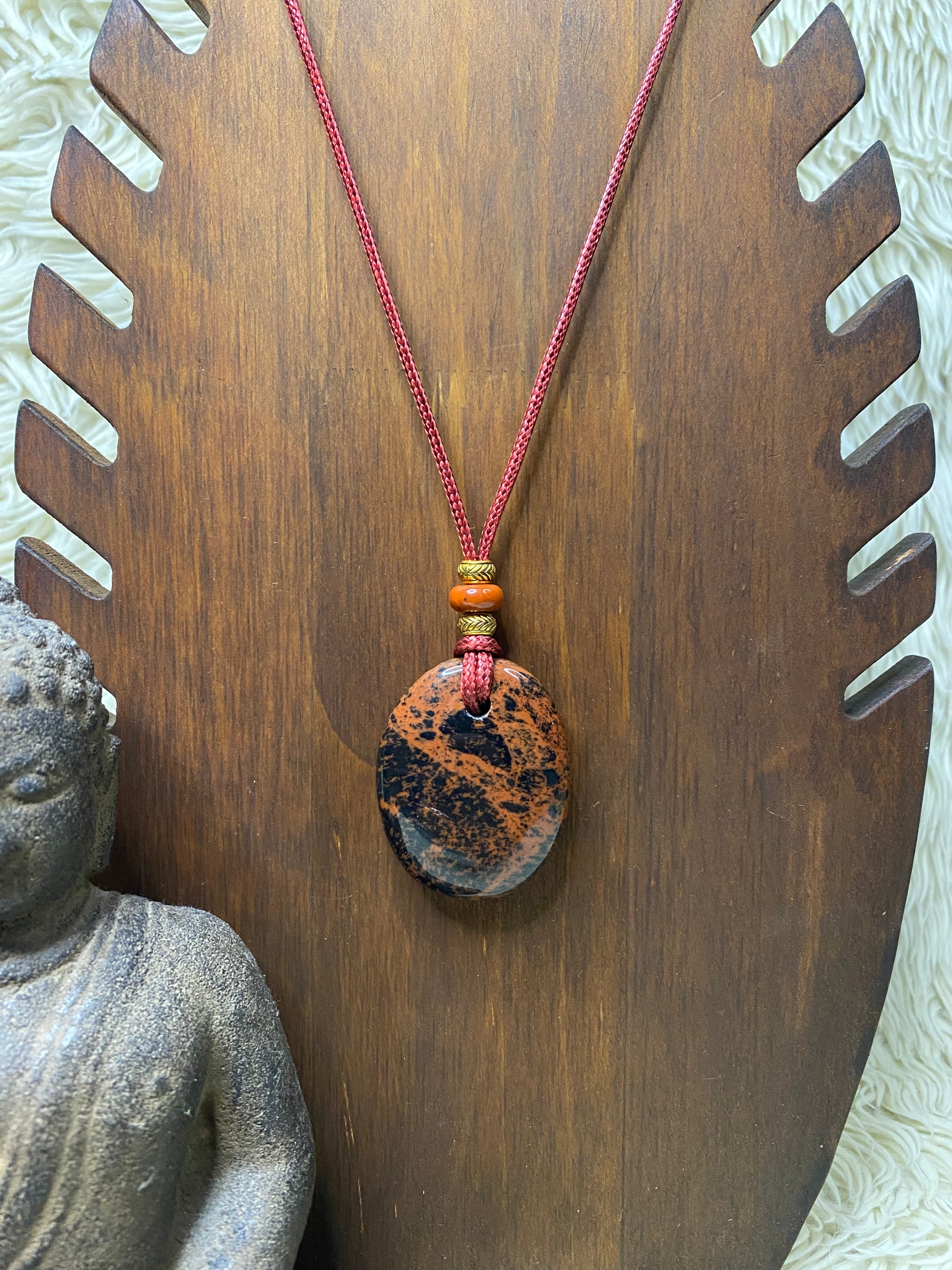 Earth Ember voelt alsof hij gevormd is in het hart van een oude vulkaan, met een rijke mahoniebruine kleur die warmte, diepte en kracht uitstraalt. Elke ketting met Earth Ember geeft een stoere, beschermende uitstraling en nodigt uit om stevig in je energie te staan.