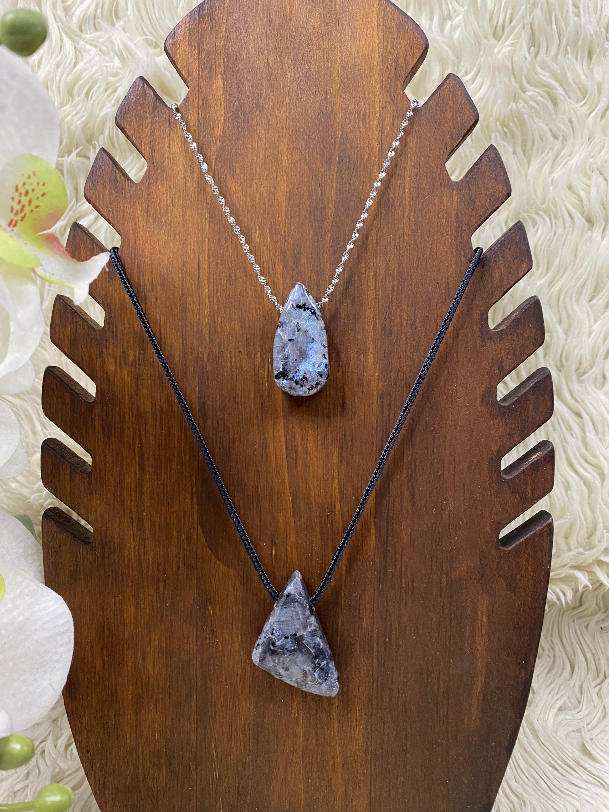 Perfect als een betekenisvol cadeau voor iemand die je dierbaar is, alsof je een stukje innerlijke rust en helderheid meegeeft. (2 kettingen)
