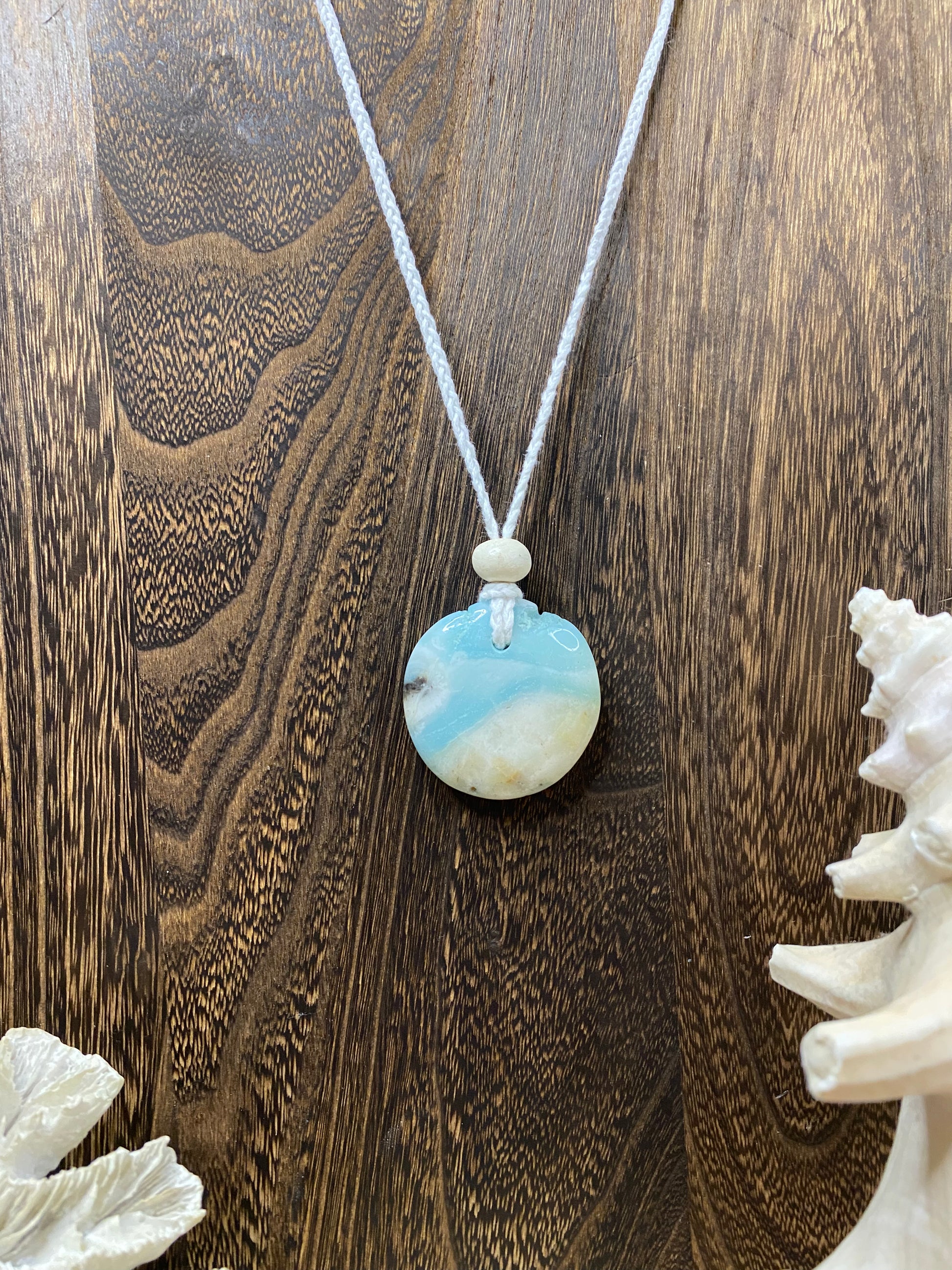 Ocean Whisper draagt de zachte kleuren van helder zeeblauw water, met witte golven die door de steen lijken te stromen. Elke ketting met Ocean Whisper voelt licht, kalm en vrij — alsof je een vleugje oceaanenergie bij je draagt.