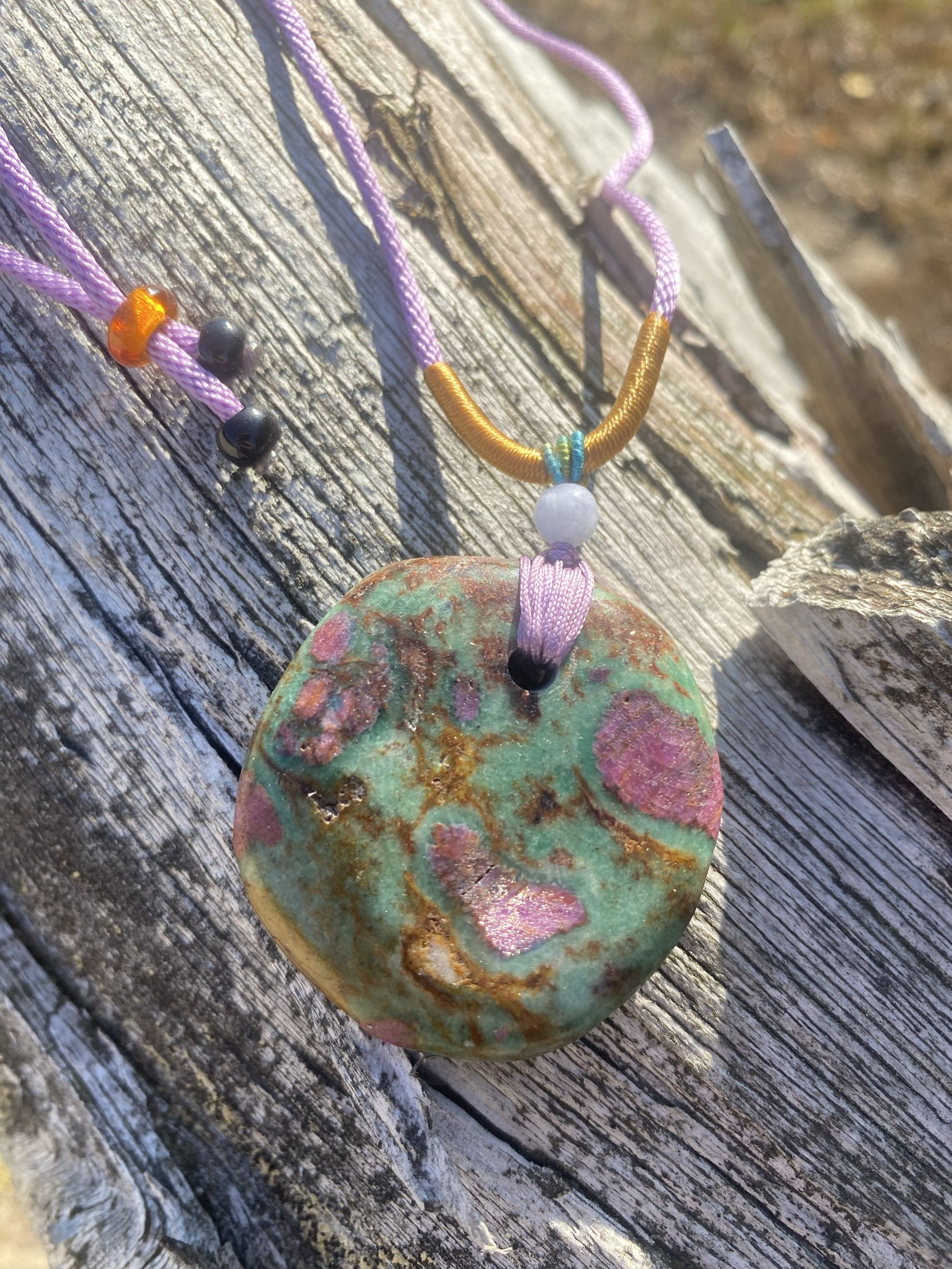 Scarlet Spirit combineert het diepe rood van robijn met het zachte groen van fuchsiet, alsof passie en harmonie samenkomen in één krachtige steen. Elke ketting met Scarlet Spirit straalt energie, moed en balans uit. De ketting komt in een verstelbare lengte die zich moeiteloos laat aanpassen.