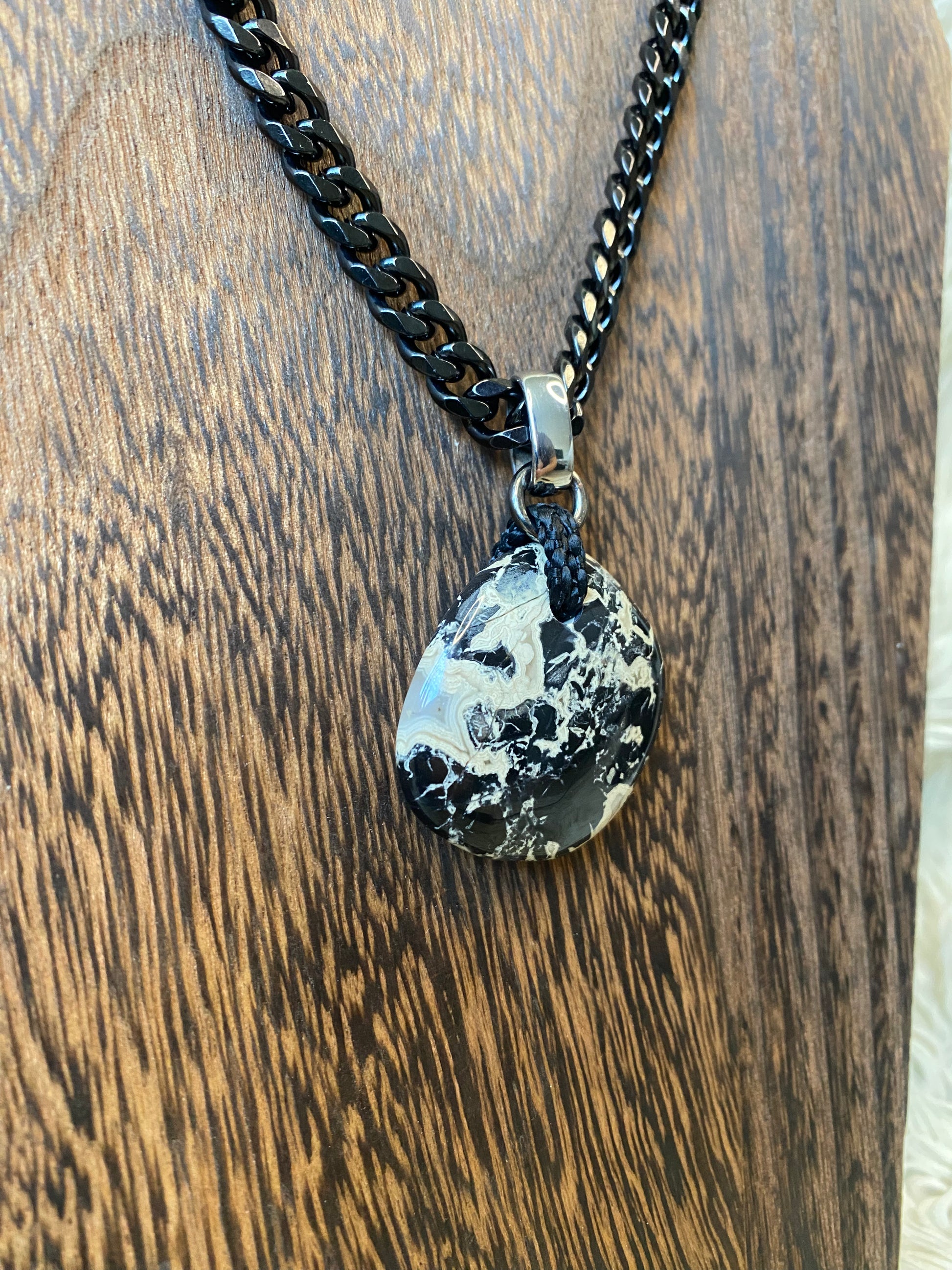 Black Mist heeft een intens zwarte basis met zachte beige accenten, elegant en krachtig tegelijk. Elke ketting met Black Mist voelt stabiel, beschermend en rustgevend aan, alsof hij je energie in balans houdt.