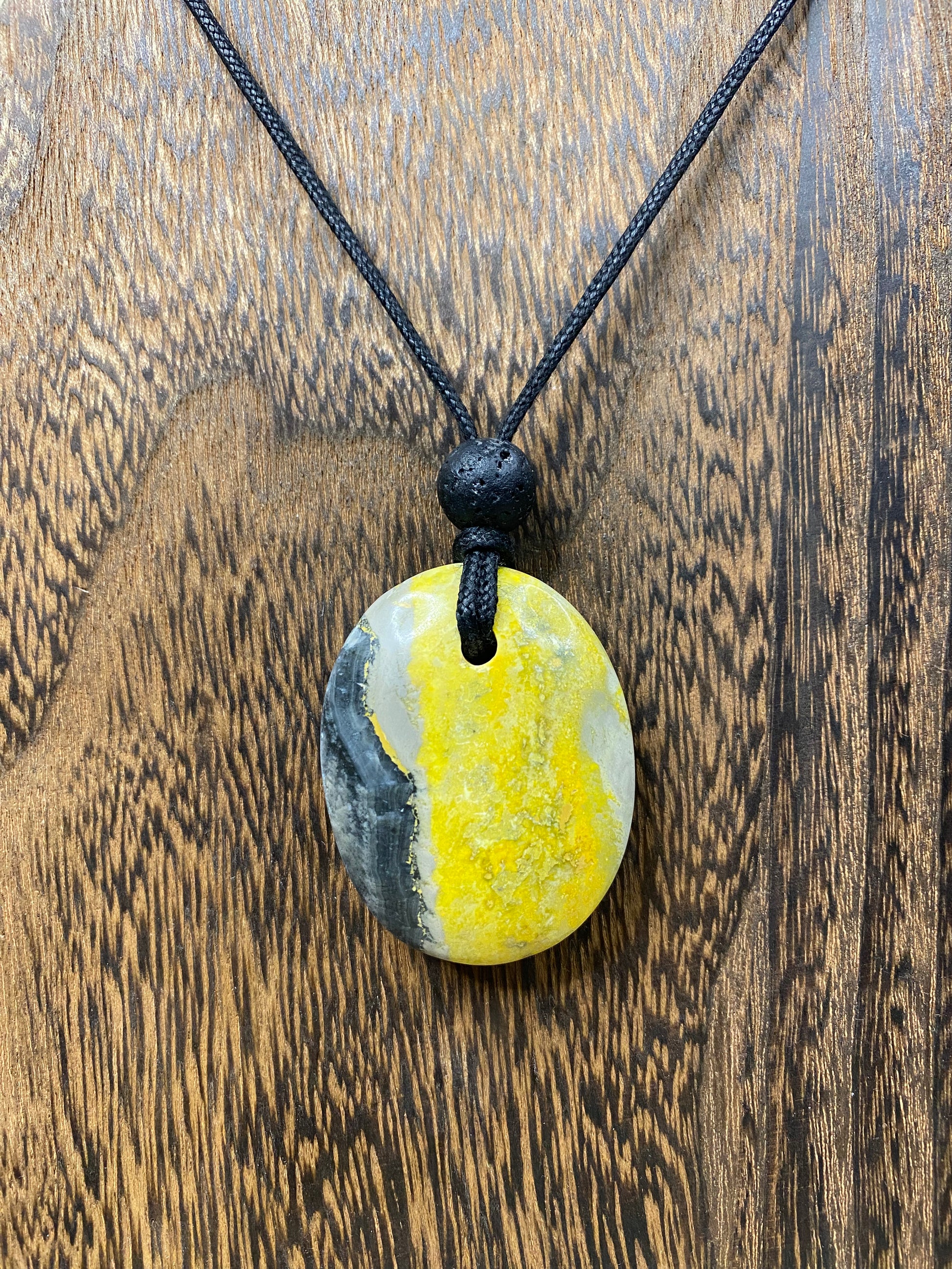 Solar Ember draagt de vurige kleuren van de zon — diepgeel, oranje en zwart die samenstromen als lava in beweging. Elke ketting met Solar Ember straalt kracht, energie en lef uit, alsof je een vonk levenslust met je meedraagt. De ketting komt in een verstelbare lengte die zich moeiteloos laat aanpassen.