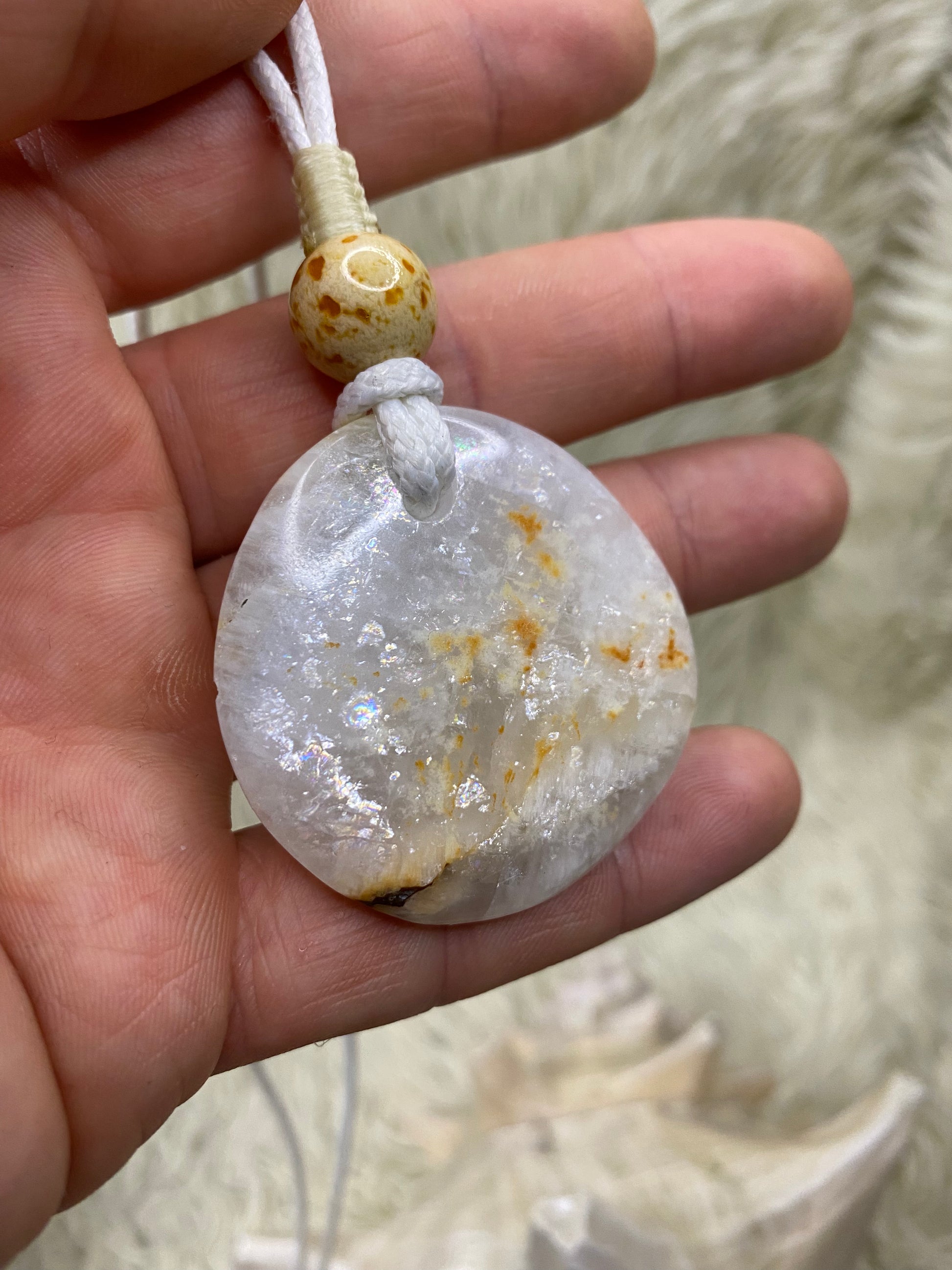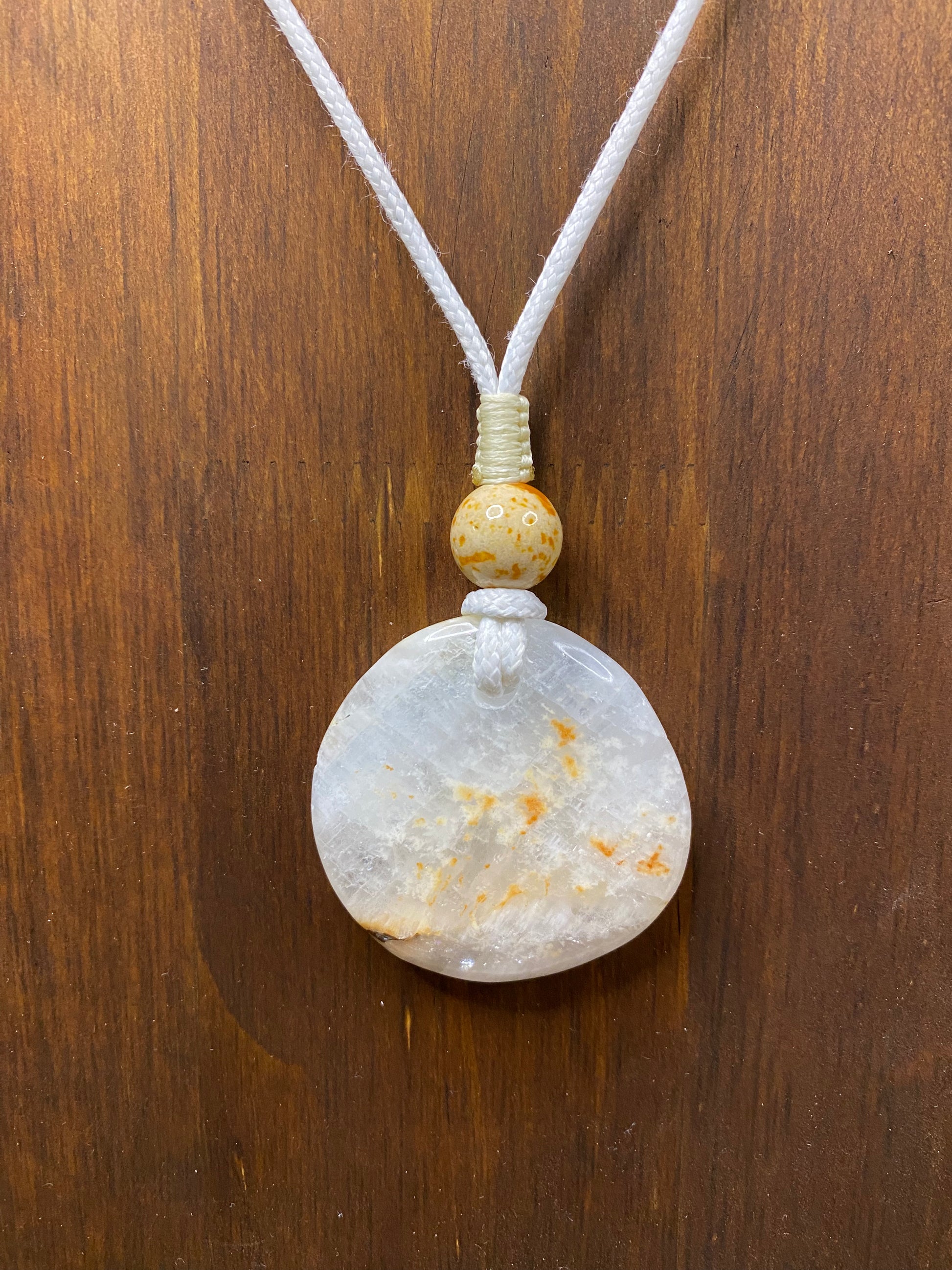 Solar Spark is wit met subtiele oranje vlekken, alsof een sprankje zonlicht gevangen is in een steen. Elke ketting met Solar Spark straalt energie, helderheid en optimisme uit, terwijl hij tegelijkertijd een gevoel van rust en balans geeft. De ketting komt in een verstelbare lengte die zich moeiteloos laat aanpassen.